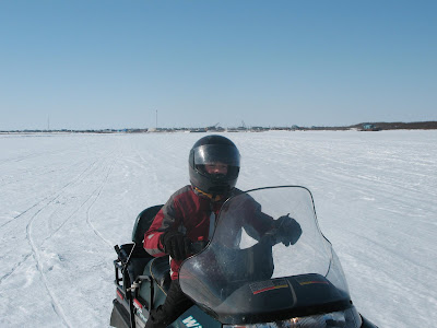 Here's Avery on our new machine. We are out on the river at the beginning of our ride. You can see Bethel in the background. I let him drive it for a few hundred yards and he did a great job. Remember, you can click on the pics for a better look!